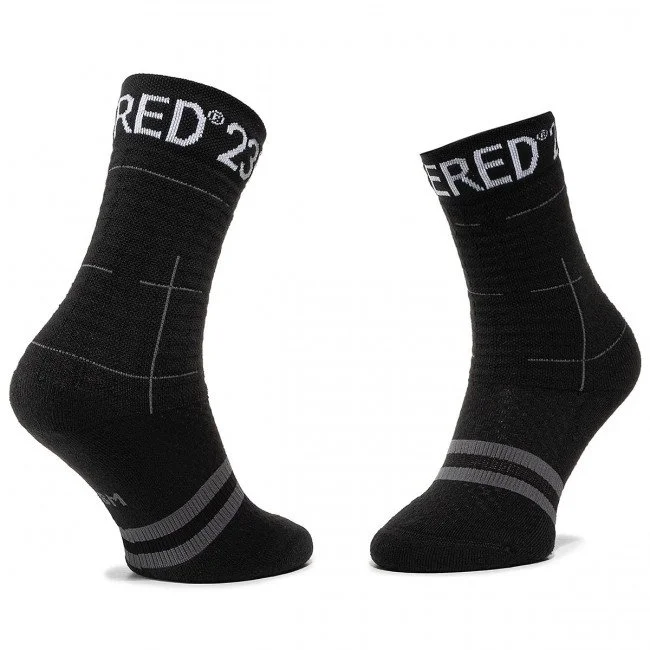 Sock graphics are achieved through a technical knit-in process that requires extensive knowledge of circular knit construction.